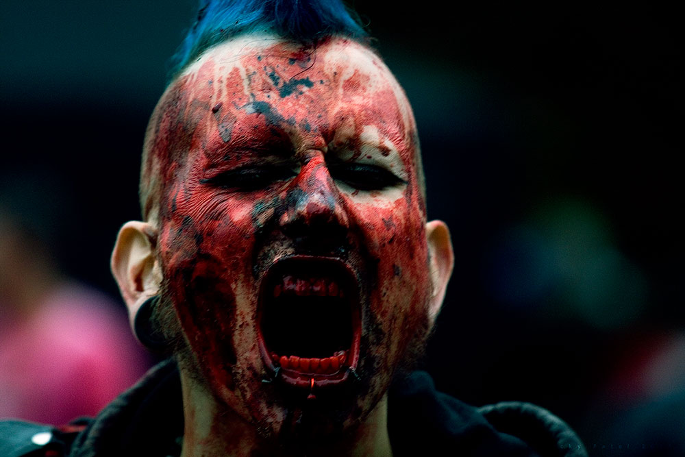 I was at an (amazing) hardcore show last night, hanging out on the outskirts of the mosh pit, enjoying the hell out of watching the folks dancing around doing spin kicks and floor punches. It’s like a cultural experience sometimes – there’s expectations for behavior and for reactions in every show, and every scene is different. There was a young man, probably early twenties, who got kicked in the leg by a dancer (I think); he got pissed and walked toward the person who had danced into him, arms out, like the “come at me bro” guy.